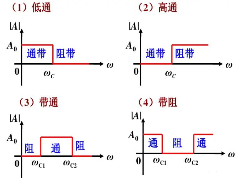 按通頻帶分類,有源濾波器可分為低通濾波器(LPF)、高通濾波器(HPF)、帶通濾波器(BPF)、帶阻濾波器(BEF)等,它們的聯系區(qū)別如圖所示: