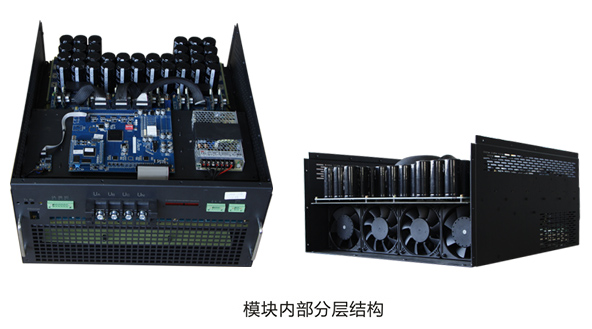 除風扇外所有導電元件與外界隔離,適應于粉塵、鹽堿、潮濕嚴重的惡劣場合。模塊內部結構示意圖如下: