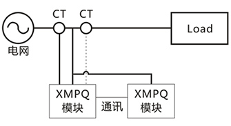 XMPQ通過外部互感器CT,實時檢測電網電流或者負載電流,控制器通過快速傅里葉變換提取出負載的基波電流、各次諧波電流,通過DQ旋轉坐標得到有功、無功、負序等數據,然后通過IGBT功率變換器產生與補償目標(諧波、無功、不平衡)大小相等相位相反的補償電流注入電網,實現對電網側的電能質量改善功能。